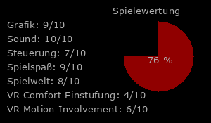 Im VR Modus sollte der HDR Modus zuvor deaktiviert werden. Zumindest mit meinem VR Headset hat es zu extremen Überbelichtungen und seltsamer Beleuchtung geführt. Bei den restlichen Grafikeinstellungen für den normalen Modus konnte keine wirkliche Auswirkung auf den VR Modus festgestellt werden, jedoch gibt es eine eigene Einstellung für den VR Modus. Die Grafik ist im VR Modus durchaus gut gelungen und es kommt zu keinerlei Frameeinbrüchen, was in VR natürlich besonders Wichtig ist. Erwähnenswert ist auch, dass Menüs und Zwischensequenzen auf einem virtuellen Bildschirm angezeigt werden. Es ist verständlich, wieso dies gemacht wurde, jedoch wird dieser manchmal nicht an einem brauchbaren Ort angezeigt. So kam es für Zwischensequenzen schonmal vor, dass diese am Boden angezeigt wurden.